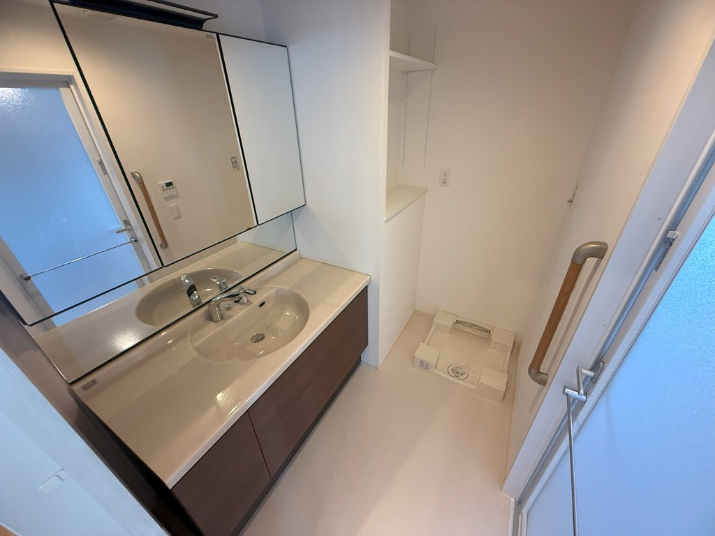 3面鏡付きの洗面台で室内洗濯機置場も完備しております✨