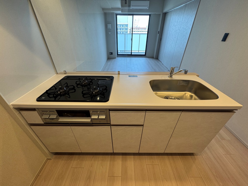 3口ガスコンロ+グリル付き+カウンターキッチンと、申し分なしの設備!